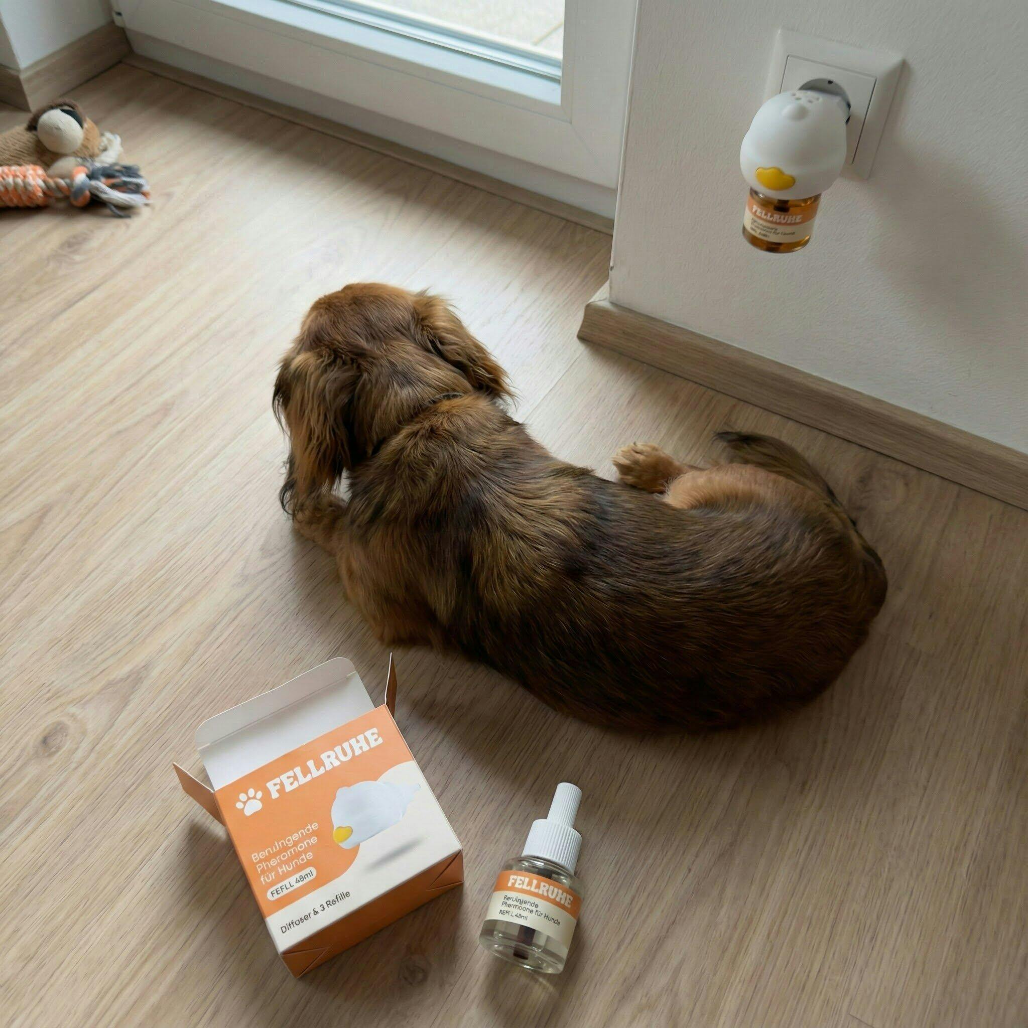Der Diffuser sollte in den Räumen eingesetzt werden, in denen sich dein Hund die meiste Zeit aufhält. Vermeide Steckdosen unter Fenstern, in der Nähe von Lüftungsöffnungen oder direkt neben Türen, da Luftzüge die gleichmäßige Verteilung der Pheromone beeinträchtigen können.